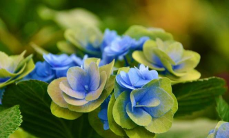 蓝绿色系花卉相对较少,常见品种集中在绣球花、睡莲、梭鱼草等。