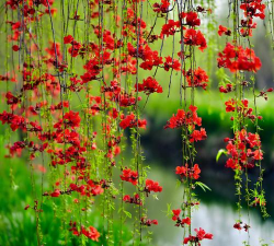 紫藤:4-5月开紫色串状花,适合花廊装饰。