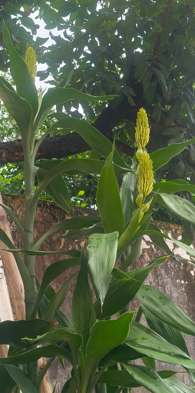 银心富贵竹:叶片中央有银白色条纹,开花特性与其他品种类似。