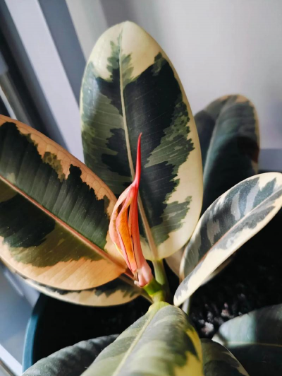 橡皮树为常绿乔木或盆栽,叶片厚革质,呈长椭圆形或矩圆形,长可达15-30厘米,宽7-9厘米。叶片互生,叶柄粗壮,侧脉多而平行,幼叶呈鲜红色。