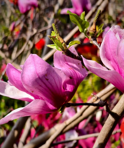 特点:花朵硕大,有白玉兰、紫玉兰等品种,先花后叶。北京大觉寺和潭柘寺的古玉兰尤为著名。