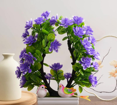 10枝装搭配青花瓷花盆,紫红色花朵高仿真,可水洗无异味,适合电视柜、餐桌装饰。