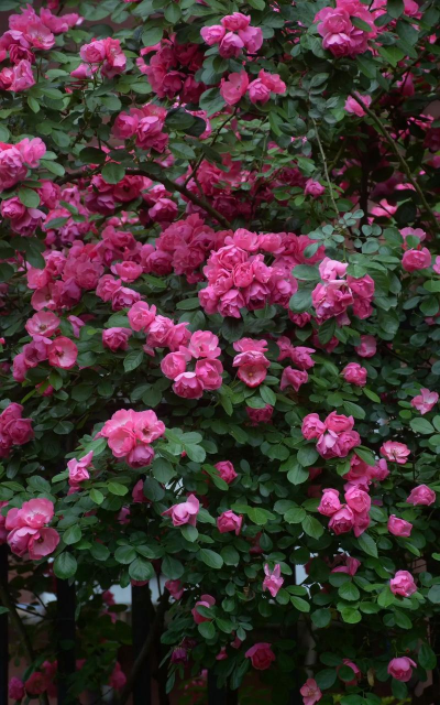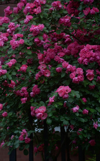 特征:四季开花,花色多样(红、粉、白、黄),攀援性强