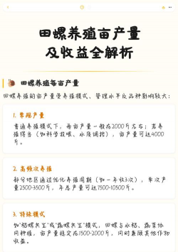 总结 :田螺亩产量在 2000-4000斤 之间,通过优化养殖技术和管理可显著提升产量。建议参考中等权威性来源并结合本地实际情况制定方案。