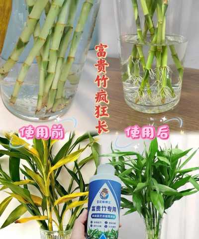 水培专用肥:水养富贵竹可添加少量营养液或含铁溶液(如硫酸亚铁),防止黄叶,但需严格控制浓度。