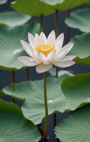 睡莲(Nymphaea)睡莲的花朵浮于水面,形态与荷花相似,但属于睡莲科。其叶片心形且基部有缺口,花色丰富(如蓝、紫、黄等),与荷花的主要区别在于叶片和花朵是否挺出水面。