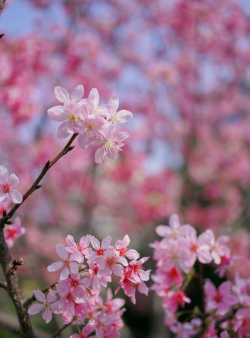 特点:早樱(如染井吉野)3月开放,花瓣有豁口;晚樱(如关山樱)4-5月开花,重瓣繁茂。