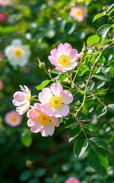 花朵:蔷薇为圆锥花序,花小而密集;玫瑰单生或簇生,花径较小且香味浓;月季花大且多季开花。