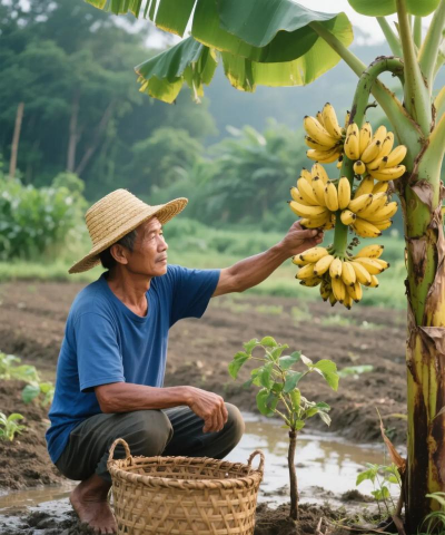 种植香蕉的步骤如下:准备成熟的香蕉果实,确保它们完全成熟,表面黄色或褐色,香气明显,质地柔软。挖出部分果实,并用芦荟填满挖出的孔。将处理过的香蕉种植到深度适中的花盆或木桶中。将容器放在阳光充足的地方,并经常浇水以保持土壤湿润。几个星期后,会