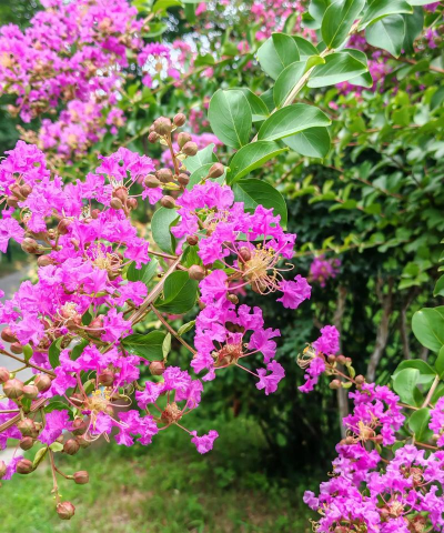 花色热烈(紫红、玫粉等),花期长且耐高温,适合打造花墙或立体绿化,控水可促花。