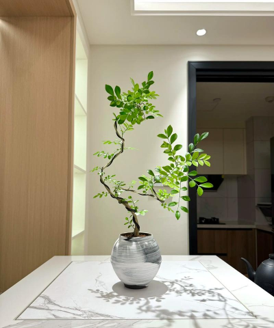 大型绿植+水泥盆:如散尾葵配水泥盆,适合客厅角落。