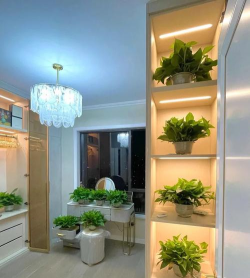 推荐理由:若为开放式厨房,可在隔断处悬挂绿萝,既能净化空气,又能作为自然装饰,连接两个区域的气场(风水学中认为有助于财气流动)。