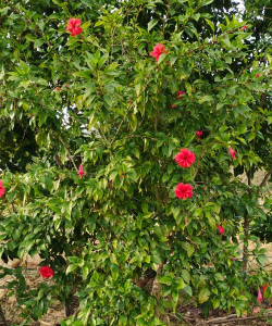 朱槿(学名:Hibiscus rosa-sinensis)的叶片和花朵具有以下特征: