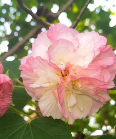 别称与特征 :又名拒霜花、片掌花,属锦葵科木槿属落叶小乔木或灌木,花朵大、颜色丰富(红、粉、白等),花期7-10月,秋季盛开时形成“四十里锦绣”的景观。