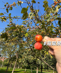 观赏期长:海棠秋季果实多为球形小果,颜色从淡黄到深红不等,如“高原之火”的灯笼形紫红色果实可经冬不落,而“冬红海棠”的果实从绿色渐变为深红色,宿存至次年春季。