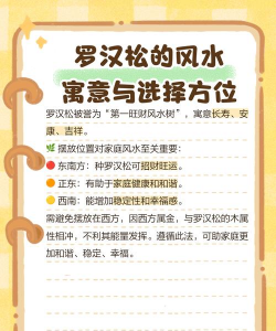 风水角度:东南方位象征“财位”,种植罗汉松可增强财运;正东方代表“健康与活力”,有助于提升家庭成员的健康运势。