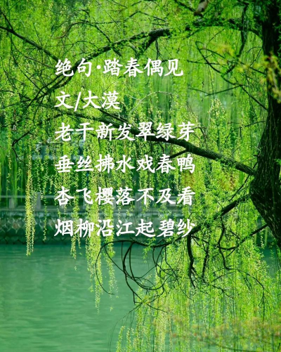 (以柳树为主,但“碧玉”“绿丝绦”隐含春天花开的意象)