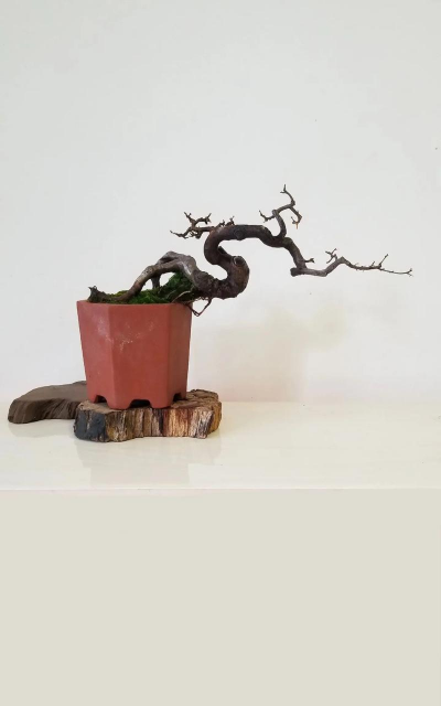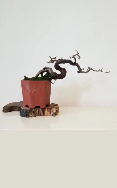 孤高意境 :浅圆形盆或石板盆,突出清瘦枝干。
