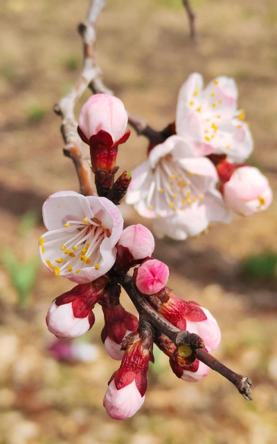 特征 :花瓣白色或带红晕,花期3-4月,含苞时纯红,开花后渐淡为白,果期6-7月,果肉甜多汁。