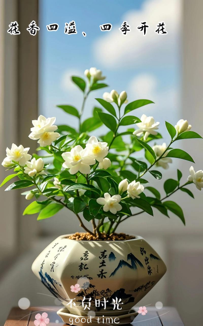 花冠结构:花瓣小而厚,数量多(16-21片),排列成3-4层,开放时层次分明。花蕾紧结,顶部略凹,如虎头茉莉、狮头茉莉等品种。