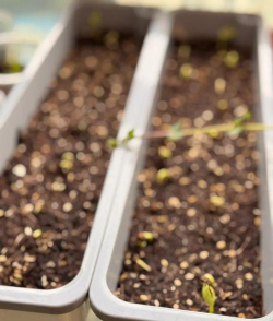 播种方法:将种子均匀撒在湿润的培养土表面,覆盖1-2厘米薄土,轻压后喷水保湿。可覆盖薄膜保温,发芽后揭膜。种子发芽需5-14天,苗高8-10厘米(约4-6片真叶)时移栽。