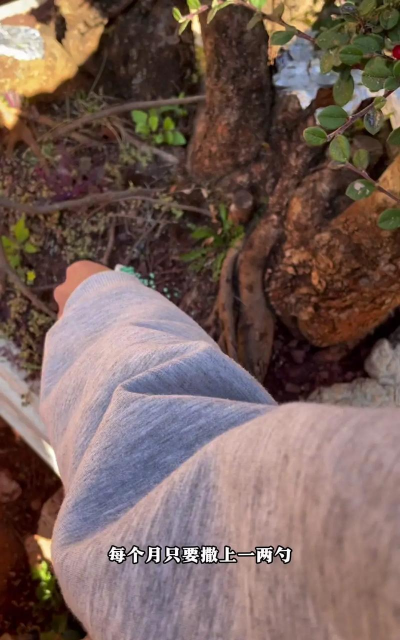 特殊配方:喜酸植物(如杜鹃)可施用含硫酸亚铁的“矾肥水”;花果类盆景需增施磷钾肥(如0.2%磷酸二氢钾叶面喷施)。