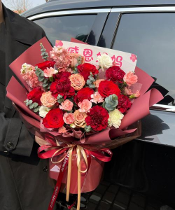 鲜花树 :可以选择各种颜色鲜艳的花卉,如玫瑰、康乃馨、百合、满天星等搭配成鲜花树,既表达了爱意,也给人以美的享受。