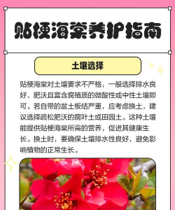总结 :以沙质壤土为主,搭配腐叶土和粗砂,确保透气排水,同时避免盐碱地,是养护贴梗海棠的最佳选择。
