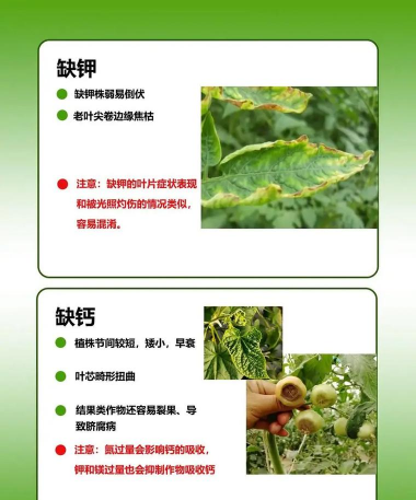 症状:磷缺乏时开花结果少,叶片可能呈暗绿色或紫红色;钾缺乏时叶缘焦枯、抗逆性差,易倒伏或落叶。例如柿子树缺磷钾会导致叶片发黄脱落。