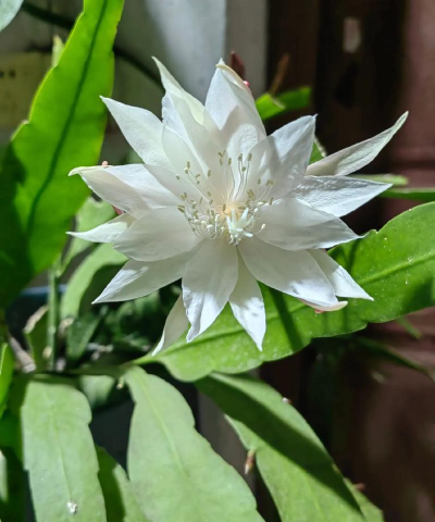 昙花为多年生附生肉质灌木,原产于热带地区,喜温暖湿润环境,常用于盆栽或庭院装饰。