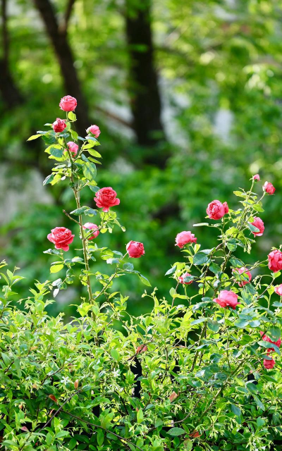 藤本月季如龙沙宝石、安吉拉等品种,长势快,可快速覆盖墙面形成花墙,需少量光照。