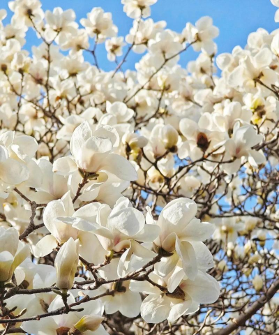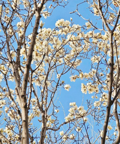 特色:公园拥有济南最大规模的白玉兰植株群,东北角的玉兰树高大密集,花开时如云似雪,香气淡雅。紫玉兰穿插其中,增添浪漫色彩。