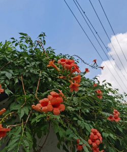 以下是与凌霄花(Campsis)外观相似的花卉,主要基于花朵形状(如喇叭形)、颜色(如红色、橙色)或攀援特性: