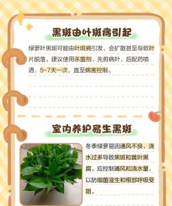 解决方法 :将绿萝移至温暖处(室内15℃以上),或用塑料袋包裹保温,避免靠近暖气直吹。