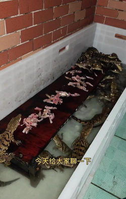 鳄鱼是肉食动物,喂养要用心,主要喂鱼,还有鸡肉,牛肉也可以,食物要新鲜,不能喂变质的,幼年鳄鱼,需要多喂几次,每天喂一两次,成年后,可以隔天喂,喂食量要控制,不能太多,也不能太少,观察它们吃的情况,灵活调整就好,喂食时要注意安全,最好用工具投喂,不要用手直接喂,避免被咬伤,同时,要定期补充钙质,可以喂些骨粉。