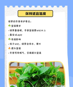 水培绿萝:冬季需使用室温水(晾晒一天),避免冷水刺激根系。综上,绿萝的养护需根据季节灵活调整温度管理,保持稳定温暖的环境是其健康生长的关键。