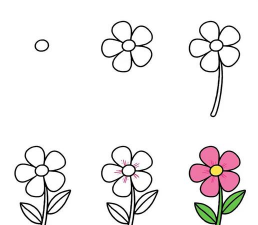接着,尝试组合它们,比如画五个小圈,围成一个大圈,一朵小花,就出现了,是不是很简单。