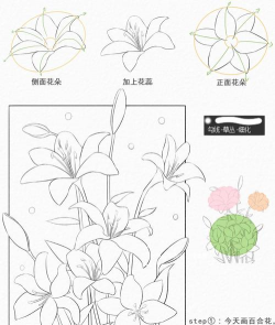花朵不是平面的,它有立体感,你要理解它的结构,比如,花心在哪里,花瓣怎么生长,然后,找出光源方向,区分出亮面和暗面,用铅笔轻轻排线,画出基本的明暗关系,这样,花朵就慢慢立体起来了。