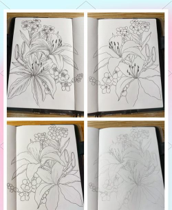 画一朵百合时,你可以重点刻画花瓣的脉络,用细笔轻轻带过,叶子上的虫眼,也可以稍微点一下,但不要过分强调,保持整体的协调,这样,一幅生动的花卉写生,就完成了。