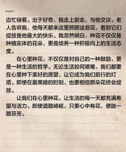 养花一段时间后,你肯定有了一些感悟,也许明白了耐心的重要,或者感受到了生命的力量,把这些收获写下来,就是作文的升华部分,让文章更有深度。