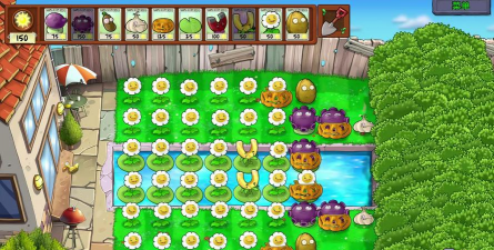 养花不能乱种,要讲究阵型,通常放在最后两排,前面用坚果墙保护,这样僵尸过不来,阳光就能安心生产,如果关卡有矿车或水池,也可以利用起来,把花种在移动平台上。