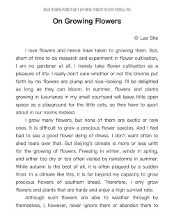 表面看,文章在写养花,其实,它在写生活态度,老舍通过养花,讲出了人生的道理,有喜有忧,有笑有泪,这不就是生活吗,既须劳动,又长见识,这不就是成长吗,他把养花和人生联系起来,让读者在平凡小事中,看到不平凡的意义。