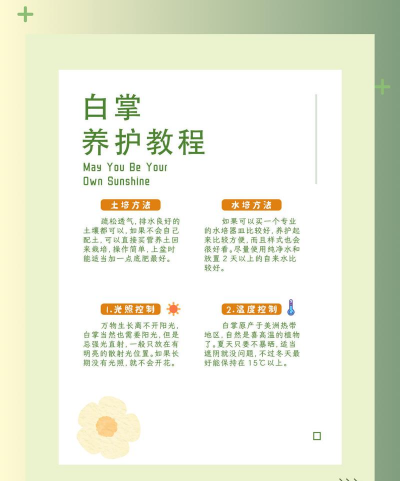 好的养花课件,内容很全面,它会从基础讲起,比如土壤怎么选,种子怎么播,浇水要多少,光照要多久,这些都很关键,然后,课件会深入一点,教你识别常见问题,比如叶子黄了怎么办,花儿不开怎么办,虫子来了怎么治,跟着课件学,你能少走弯路,当然,课件还会分享技巧,比如如何施肥更有效,如何修剪更美观,这些经验很宝贵,课件会总结要点,帮你形成系统知识,这样你就能举一反三,养好各种花了。