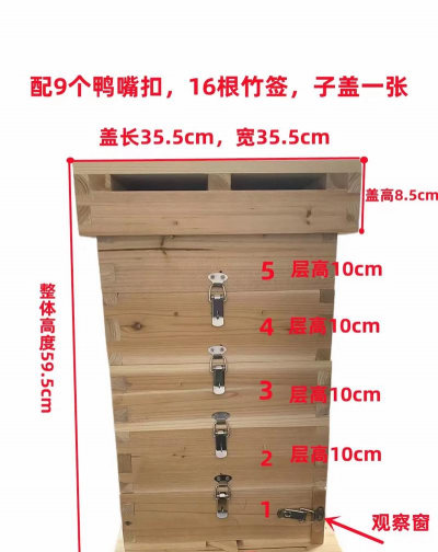 选箱子是第一步,不能马虎,格子箱的材质很重要,最好选杉木的,因为杉木透气性好,而且不容易变形,箱子的尺寸也要合适,不能太大,也不能太小,太大了蜜蜂造脾慢,保温也差,太小了又容易分蜂,一般建议,内径在25厘米左右,高度每层10到15厘米,这样的箱子,蜜蜂住着舒服,也方便我们加继箱。