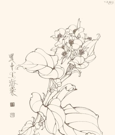 工笔花卉白描,线条勾勒之美,展现传统韵味