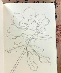 接着是观察与起稿,画之前先多看,看真实的花,也看别人的好作品,用铅笔轻轻打个草稿,定好花朵位置,注意花瓣的层叠关系,钢笔画不能擦,所以起稿要谨慎,但也不用太紧张。