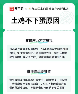 土鸡不下蛋的原因涉及多种因素,包括生理、环境、营养、疾病和管理等方面。以下是综合分析搜索结果后的主要结论: