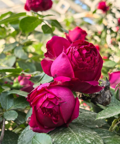 香水月季在光照充足处生长得更好,光照不足会导致植株枝叶徒长,夏季光照强烈,需适当遮光。