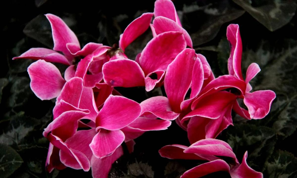 仙客来,别名萝卜海棠、兔耳花、兔子花、一品冠、篝火花、翻瓣莲,是报春花科、仙客来属多年生草本植物,叶片由块茎顶部生出,心形、卵形或肾形,叶片有细锯齿,叶面绿色,具有白色或灰色晕斑,叶背绿色或暗红色,叶柄较长,红褐色。仙客来是一种普遍种植的鲜花,适合种植于室内花盆,冬季则需温室种植。仙客来的某些栽培种有浓郁的香气,而有些香气淡或无香气。