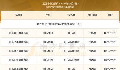 根据2025年10月10日的最新市场数据,豆油的价格因品类、地区和交易方式不同而有所差异,具体如下: